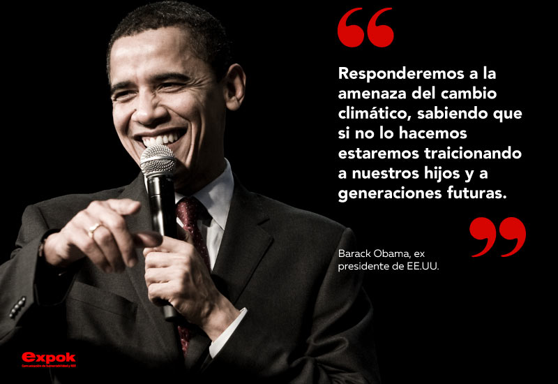 “Responderemos a la amenaza del cambio climático, sabiendo que si no lo hacemos estaremos traicionando a nuestros hijos y a generaciones futuras”.