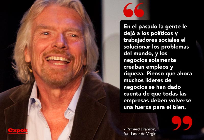 “En el pasado la gente le dejó a los políticos y trabajadores sociales solucionar los problemas del mundo, y los negocios solamente creaban empleos y riqueza. Pienso que ahora muchos líderes de negocios se han dado cuenta de que todas las empresas deben volverse una fuerza para el bien”.