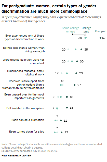 Más de 4 de cada 10 mujeres han sufrido discriminación de género en el lugar de trabajo, según datos de Pew Research Center en 2017.