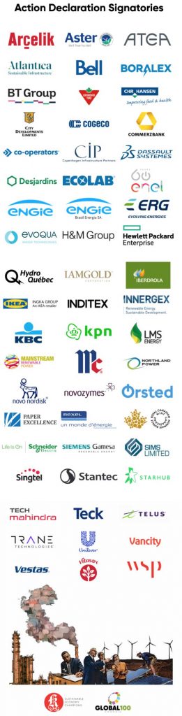Organizado por Corporate Knights y el Global 100 Council, el acuerdo obliga a las corporaciones a garantizar su compromiso con los formuladores de políticas y las negociaciones hechas en su nombre por grupos comerciales, apoyando la acción climática alineada con los objetivos establecidos en el Acuerdo de París.