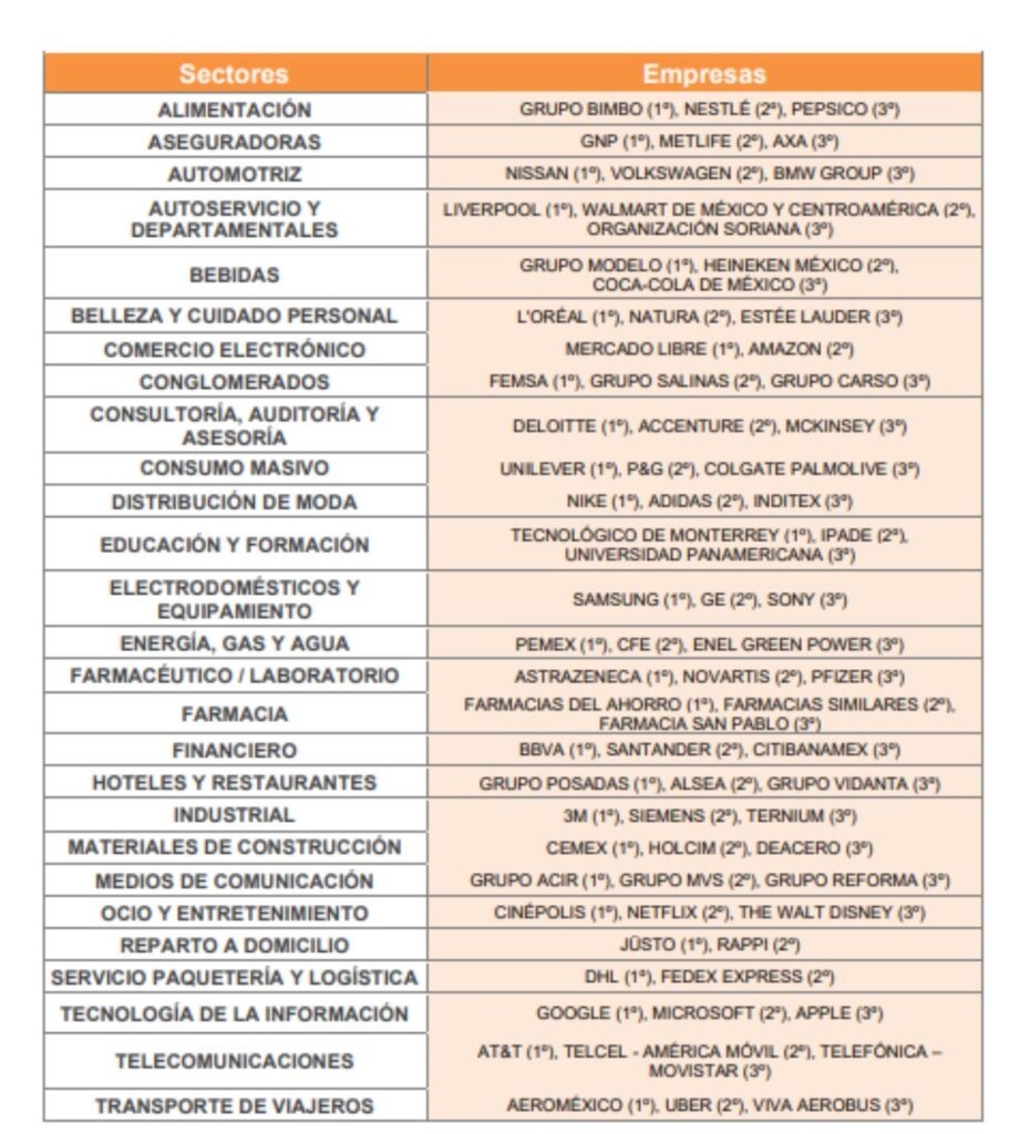Además del ranking general de las 200 empresas con capacidad de atraer y retener el talento en México, se han elaborado los siguientes rankings: