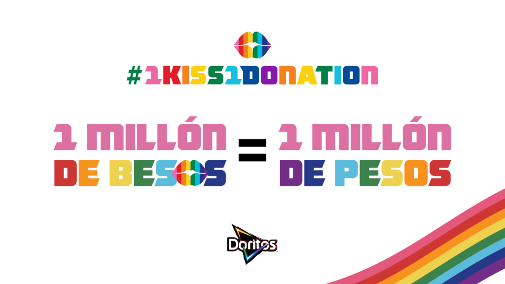 Hoy, 5 años después, volvemos en un momento histórico en el que la distancia nos separa, pero el amor nos une y nos permite continuar fortaleciendo nuestro compromiso con la diversidad y la inclusión. A través de nuestra plataforma #1Beso1Donación, que está activada simultáneamente en México y Brasil, crearemos una cadena de besos digital que invite a todos a sumarse a nuestro movimiento de cercanía. Y es que, por cada beso que se suba a la plataforma www.doritos.com.mx/rainbow, estaremos haciendo un donativo a Cuenta Conmigo, Diversidad Sexual Incluyente, A. C., organización con la que hemos trabajado los últimos cuatro años en esta iniciativa. La misión es alcanzar 1 millón de pesos, para, con ello, ayudar a construir comunidades virtuales que apoyen a la comunidad LGBT+ y sus familias.