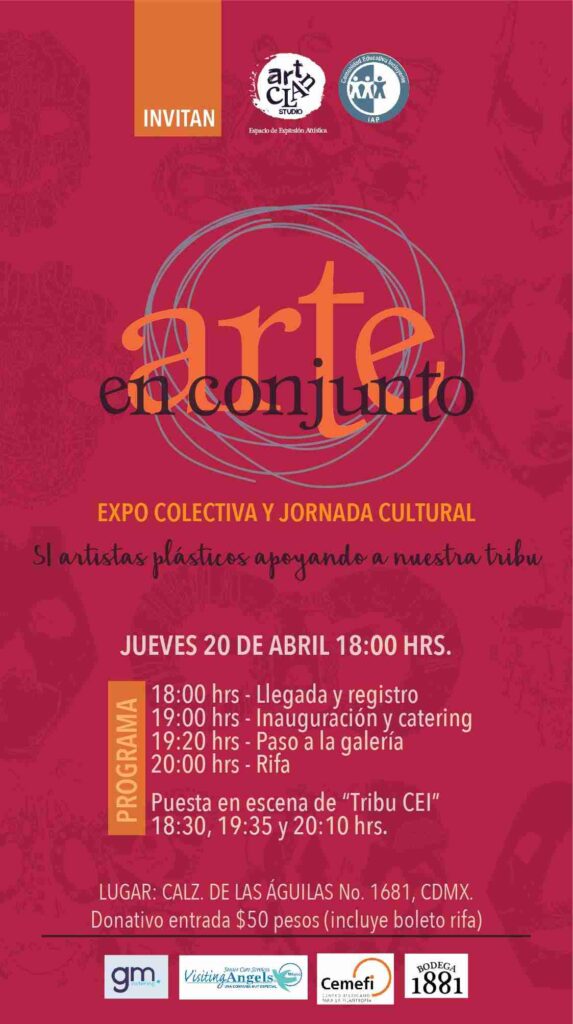 La Comunidad Educativa Incluyente (CEI), IAP y ArtClan-Studio, regresan con una Jornada Cultural que abarca pintura, escultura y fotografía además de la presentación del grupo de teatro del CEI con su obra “La Tribu CEI”. Esta puesta en escena se ha desarrollado en su totalidad por los alumnos del centro.