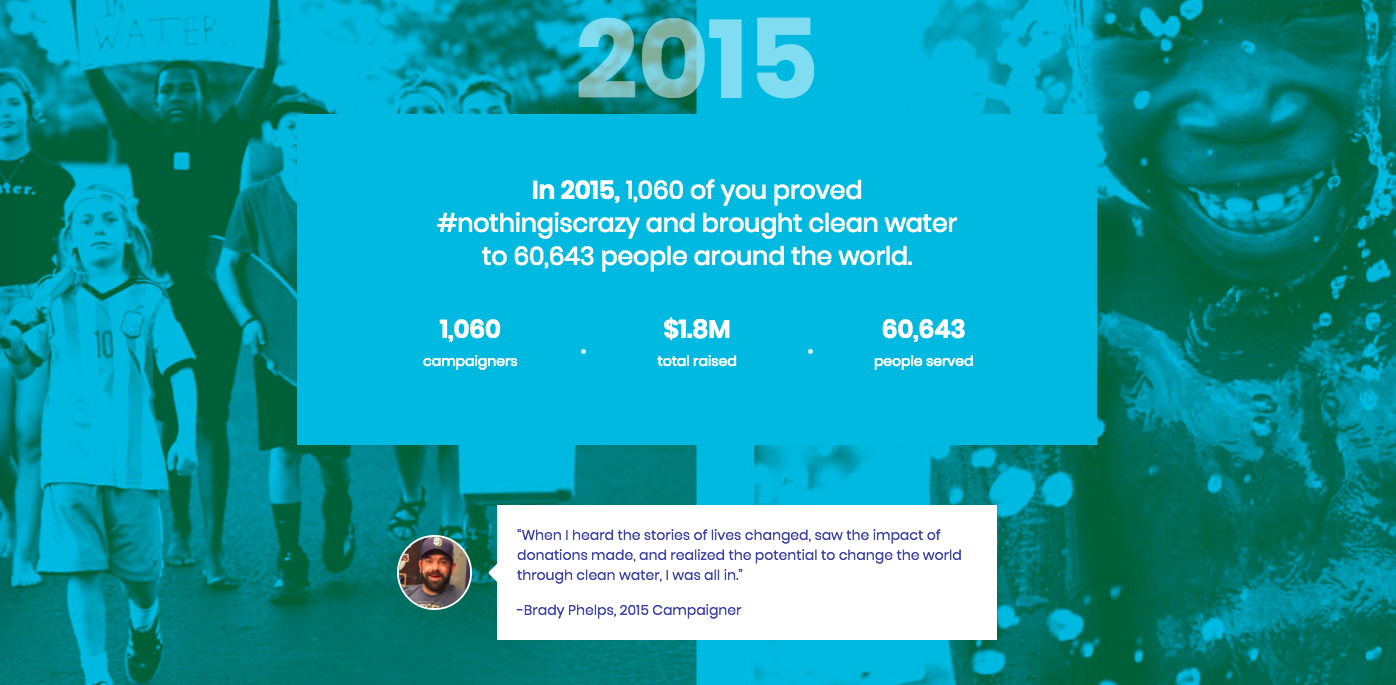 La “September Campaign” de Charity: Water, es una prueba de que las campañas de medios sociales pueden ser sostenibles. Esta logró recaudar más de 1.8 millones de dólares en 2015.