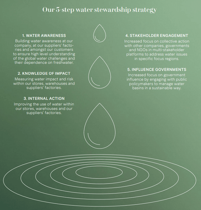 5. H&M desarrolló una nueva hoja de ruta del agua, respaldada por WWF, que incluye los objetivos de reducir el uso de agua en un 25% en la producción y reciclar el 15% de las aguas residuales para volver a los procesos de producción para 2022.