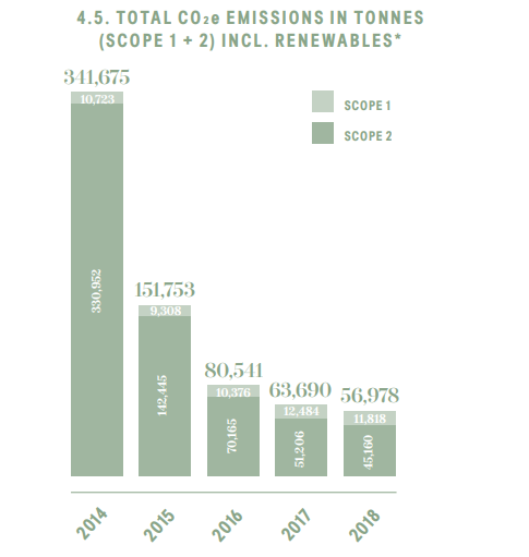 En 2018, la marca redujo las emisiones de carbono de sus operaciones en un 11% más en comparación con 2017.