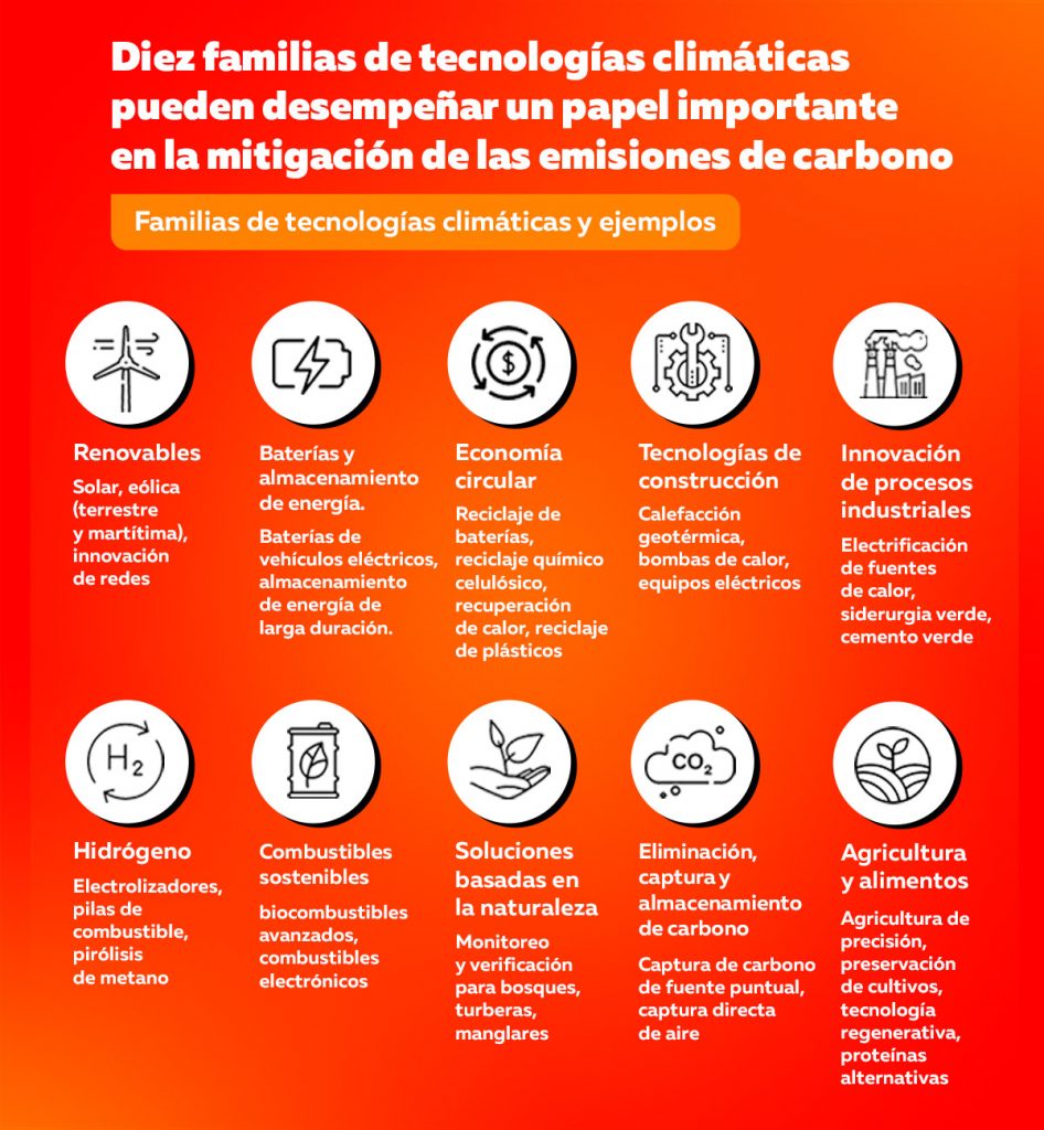 Las ventajas de iniciar en las tecnologías climáticas están disponibles para las compañías que quieran competir y replantear audazmente sus posiciones en el mercado. En el siguiente esquema, te presentamos como se organizan: