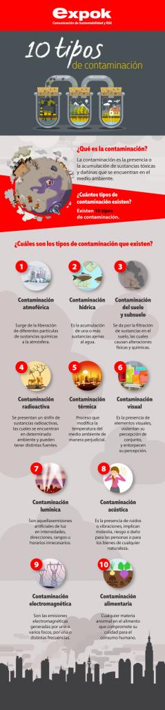 La contaminación se clasifica en 10 secciones de diferentes tipos: