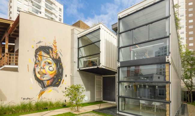 La compañía Rodrigo Kirck Arquitetura, con sede en Brasil, se encarga de aumentar la experiencia del coworking sustentable, diseñando oficinas con contenedores y otros materiales reciclados e integraron jardines al interior y exterior de estos espacios.