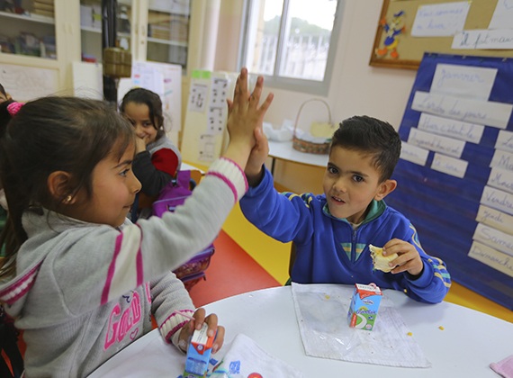 En Líbano, LibanLait está suministrando leche UHT producida localmente a escuelas libanesas a través de dos programas: en colaboración con el PMA y el Ministerio de Educación del Líbano, y con la ONG TheirWorld.