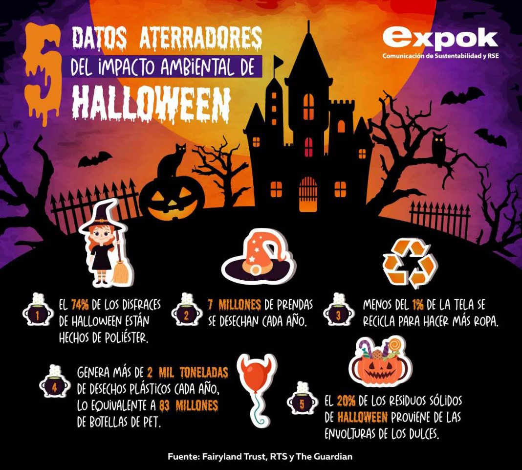 Sabemos que las empresas de venta minorista —como Amazon y AliExpress— ofrecen muchas opciones y a bajos precio para decorar y ambientar las celebraciones de Halloween. Sin embargo, la mayoría de estos artículos están diseñados para ser de un solo uso y están hechos con materias derivadas del petróleo, por lo que su degradación tarda siglos, sumándose a la contaminación que invade al aire, el suelo y el agua.
