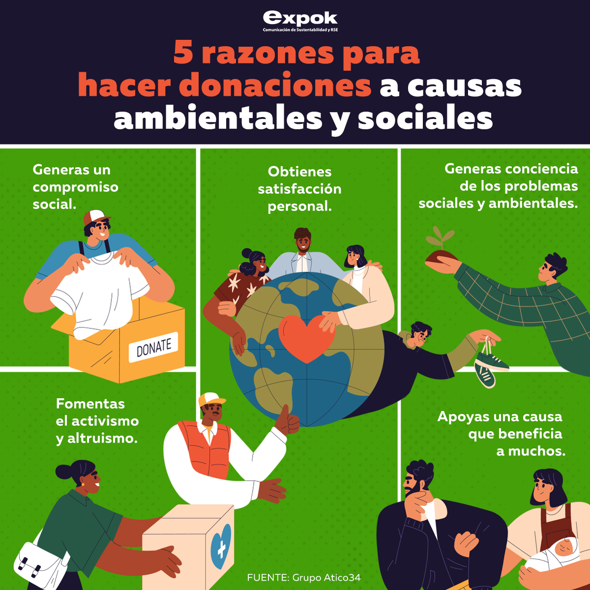 Ya sea como parte de la Responsabilidad Social Individual (RSI) o a partir de una organización, efectuar acciones que impulsen una transformación social y ambiental tiene grandes beneficios para quien las hace y para quienes las reciben. La donación es una forma de activar la conciencia por lo que incrementa el sentido de pertenencia y de involucramiento con las causas importantes.