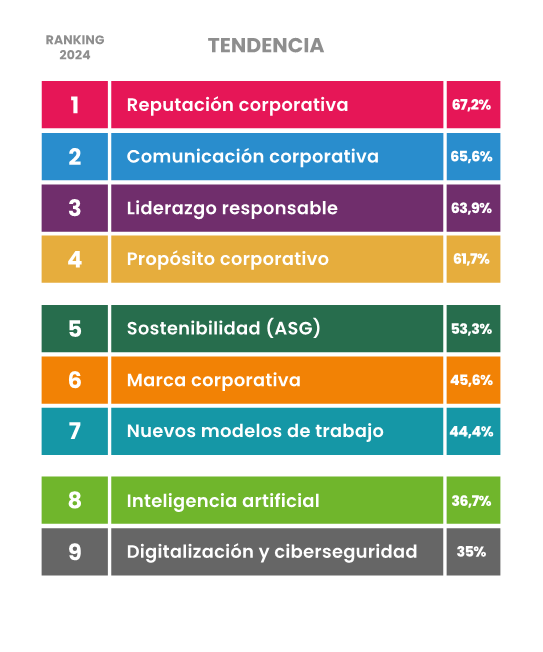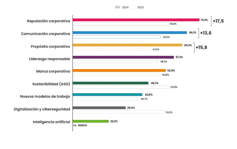 La edición de 2024, en la que se ha entrevistado a más de dos mil 100 profesionales de los cuales 180 son participantes de México, muestra la importancia estratégica que adquiere la reputación corporativa, siendo, a la vez, la tendencia más importante y a la que más recursos y energía dedican las organizaciones de la región.