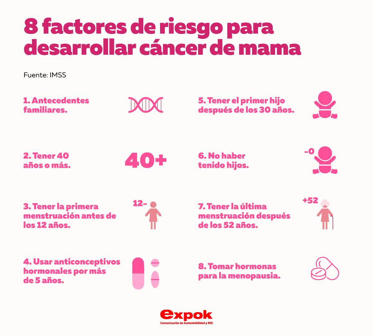 Hay muchos factores de riesgo para desarrollar cáncer de mama, por ello, el Instituto Mexicano del Seguro Social recomienda autoexplorarse después de cada menstruación para identificar alguna “bolita” o anomalía. Para informarte más al respecto, te compartimos estos 8 factores de riesgo.