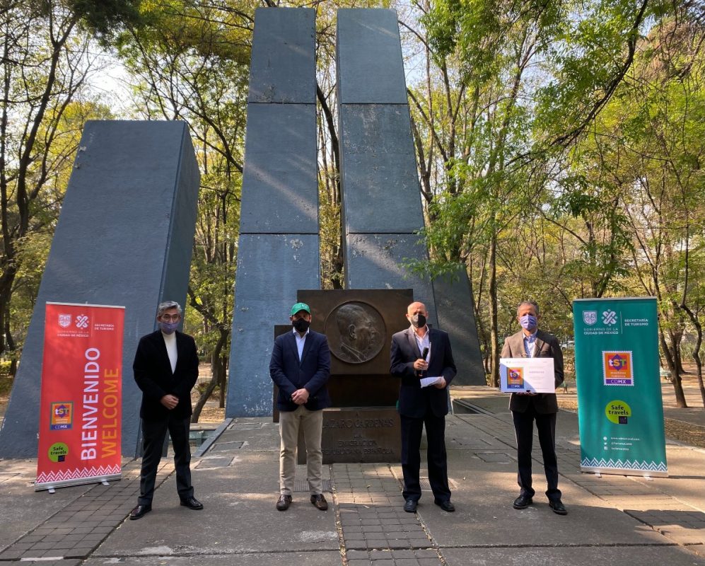 Aeroméxico recibió este día el Timbre de Seguridad Turística otorgado por la Secretaría de Turismo del Gobierno de la Ciudad de México. El distintivo ha sido entregado por las autoridades capitalinas a las empresas del sector que cumplen con disposiciones oficiales y adoptan normas internacionales en materia sanitaria.