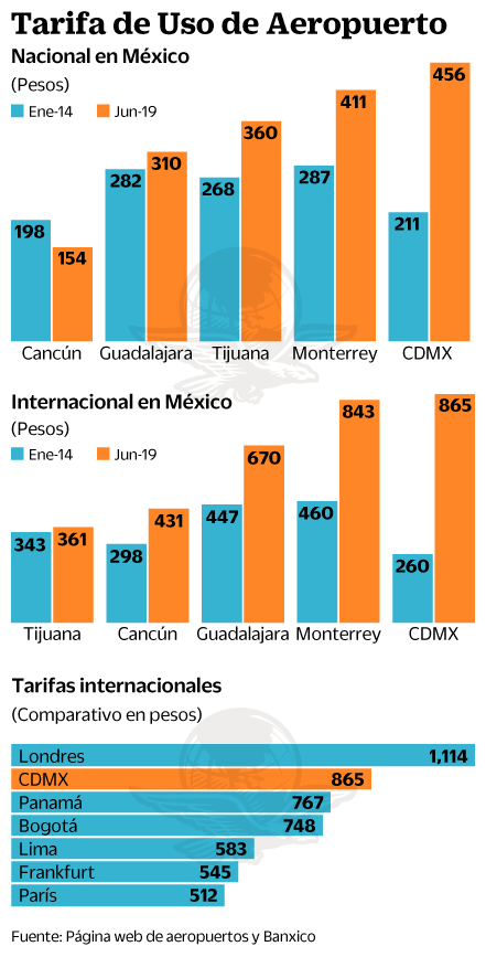 Encima de todo, cara. Debido a que el flujo de la TUA es la garantía para pagar la deuda para construir Texcoco, esta tarifa se incrementó considerablemente desde 2018.
