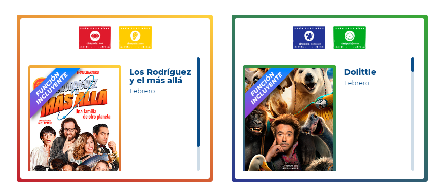 Las Funciones Incluyentes se realizan únicamente en aquellos conjuntos de Cinépolis que han sido habilitados para ser sedes. En la sección “Cines con Funciones Incluyentes” puedes consultar cuáles son estos.