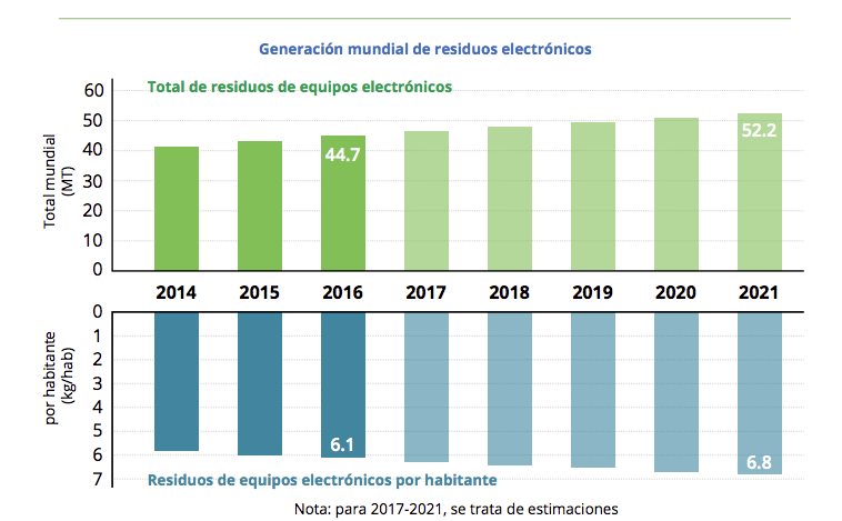 Se trata de un documento llamado “El monitor global de la basura electrónica 2017”, en el cual se habla de este aumento atribuido al incremento del poder adquisitivo y a la caída de los precios de los dispositivos electrónicos, además que esto supone un importante crecimiento en el riesgo para el medioambiente y para la salud.