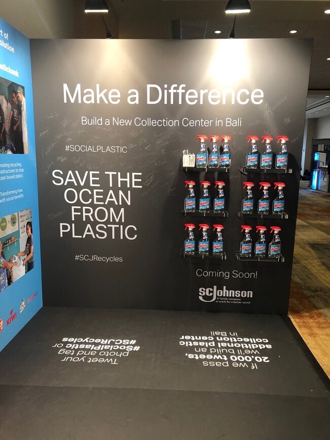 La empresa también lanzó una campaña en las redes sociales para crear conciencia sobre el problema de la contaminación plástica oceánica, prometiendo financiar un centro de reciclaje adicional en Indonesia si llega a al menos 20,000 retweets en Twitter que incluyen los hashtags #SocialPlastic o #SCJRecyles.