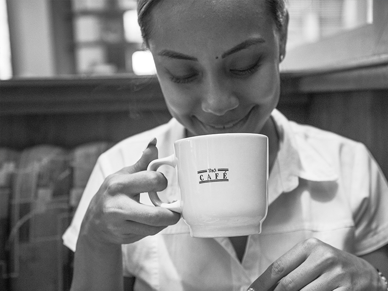 “Se emplean 11 gramos de café en 160 ml de agua, se agrega el café en seco para percibir la fragancia, posteriormente se hace la infusión del agua caliente, justo éste es el momento de aspirar el aroma. Después, se reposa el líquido por cuatro minutos, el paso siguiente es retirar la costra de café y dejar enfriar un poco. Todo estará listo para sorber el café: sentir la acidez y el cuerpo en las glándulas salivales; la sugerencia es realizar esta misma operación en caliente, tibio y frio para resaltar las notas características del café en sus diferentes sabores”, indica Pedro Rangel, barista de la Planta tostadora de café Toks, Cañada Azul.