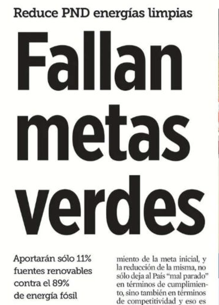 Una nota reciente del periódico Reforma ( Diana Dante) , titulada “Fallan metas verdes”, expone una realidad que contrasta con las expectativas ciudadanas. Según el Plan Nacional de Desarrollo 2025-2030, solo el 11% de la energía en México provendrá de fuentes renovables, mientras que el 89% restante seguirá dependiendo de combustibles fósiles. Esta cifra está muy por debajo de la meta original de 35% para 2024 y alejada de los compromisos internacionales como el Acuerdo de París.