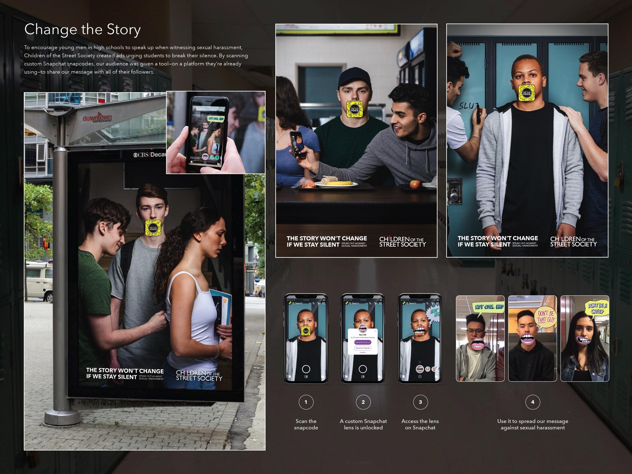 La organización Children of the Street Society, que se encarga de desarrollar iniciativas para prevenir y concientizar sobre la explotación sexual y la trata de personas, desarrolló una poderosa campaña contra el acoso sexual en las escuelas y usó como principal aliado a las redes sociales, como Snapchat.