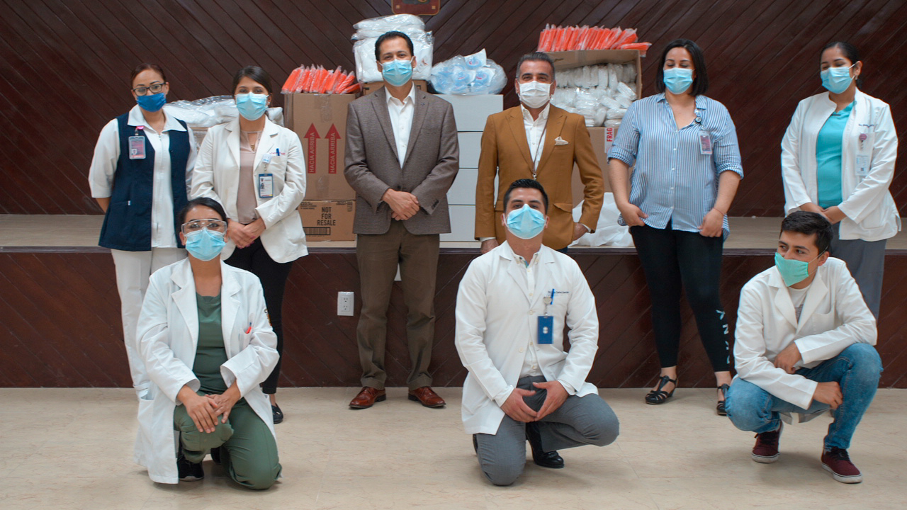 Entre los insumos que recibieron las unidades médicas se encuentran tres mil 800 cubrebocas triple capa, mil 200 mascarillas KN95, 500 filtros para sistema respiratorio de ventilación mecánica, mil trajes de protección, además de productos Hershey’s como Barras de Chocolate y Kisses que se distribuyen entre el personal médico.
