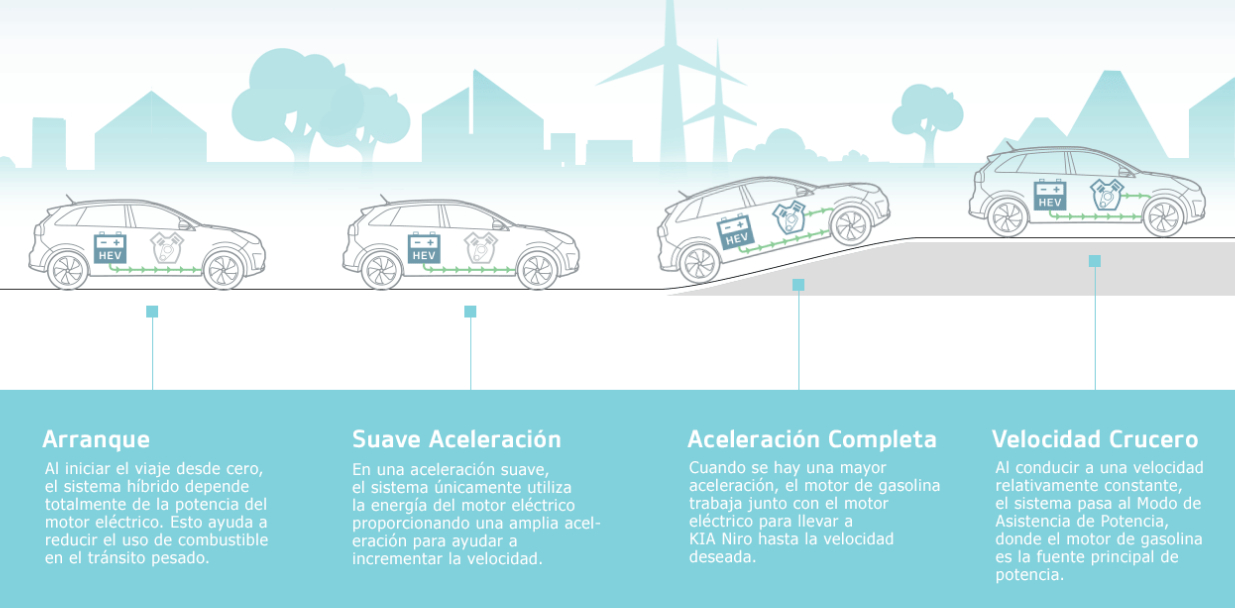 Por el lado de la batería, esta proporciona energía para que el aire acondicionado y otros sistemas se inactiven cuando el vehículo está parado y al moverse, entra de manera inmediata el motor eléctrico.