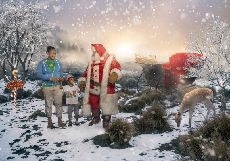 “Esencialmente, lo que hicimos fue establecer un estudio fotográfico de pantalla verde y tomar hermosas fotos de los niños, más tarde mágicamente, fotografiarlos en escenas navideñas personalizadas y sorprender a sus familias con una obra de arte para atesorar para siempre.