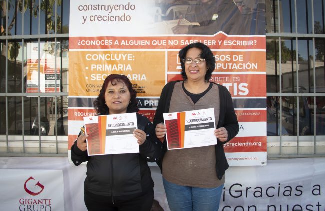Aprovechando una plática mensual que se realiza con todos los trabajadores de la construcción para abordar temas específicos de seguridad e higiene, Fundación Gigante hizo el reconocimiento público al esfuerzo de los estudiantes adultos que lograron obtener su certificado.