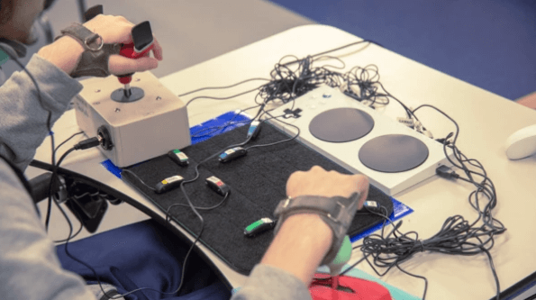 - Nuevo controlador Xbox One con botones gigantes y opciones para los pulsadores sip/puff (soplido y succión) utilizados por personas parapléjicas.