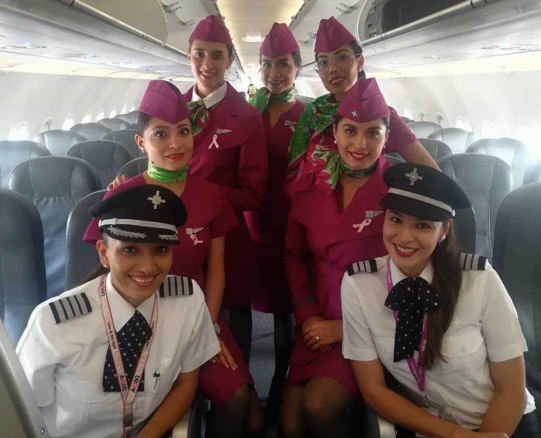 Este importante vuelo fue realizado el pasado 19 de octubre de 2018, y lo especial de este es que toda la tripulación fueron mujeres; buscó elevar los niveles de conocimiento sobre el cáncer de mama en el mes que se celebra y especialmente dignificar a las sobrevivientes de este padecimiento.