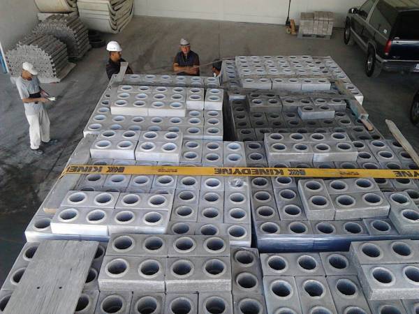 Al principio, la mezcla se compacta en una prensa hidráulica en piezas de 6 toneladas cada una, después se realiza un proceso de curado alternativo que sustituye los hornos de cocción por un sistema que emplea el agua de lluvia y energía solar para hidratar los ladrillos.