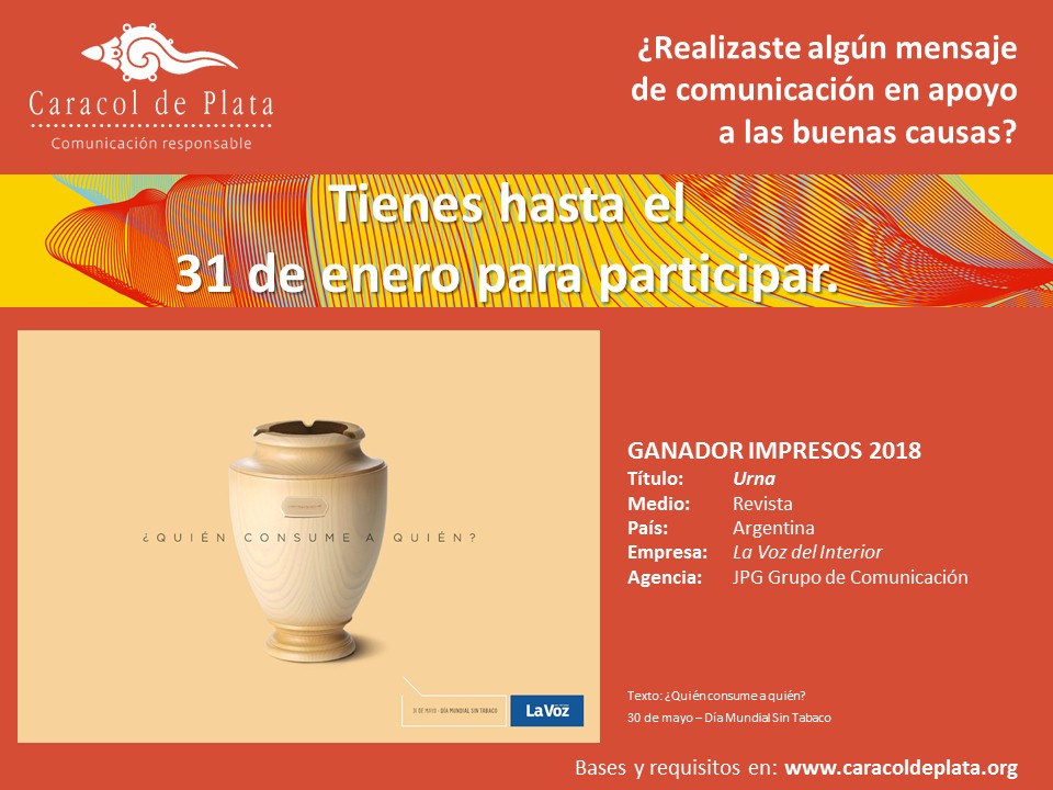 Por ejemplo, el impreso titulado “Urna”, ganador de la categoría de impresos y que busca generar conciencia ante los daños causados por el tabaquismo. Iniciativa de la agencia JPG Grupo de Comunicación para la Voz del Interior. (gráfico)