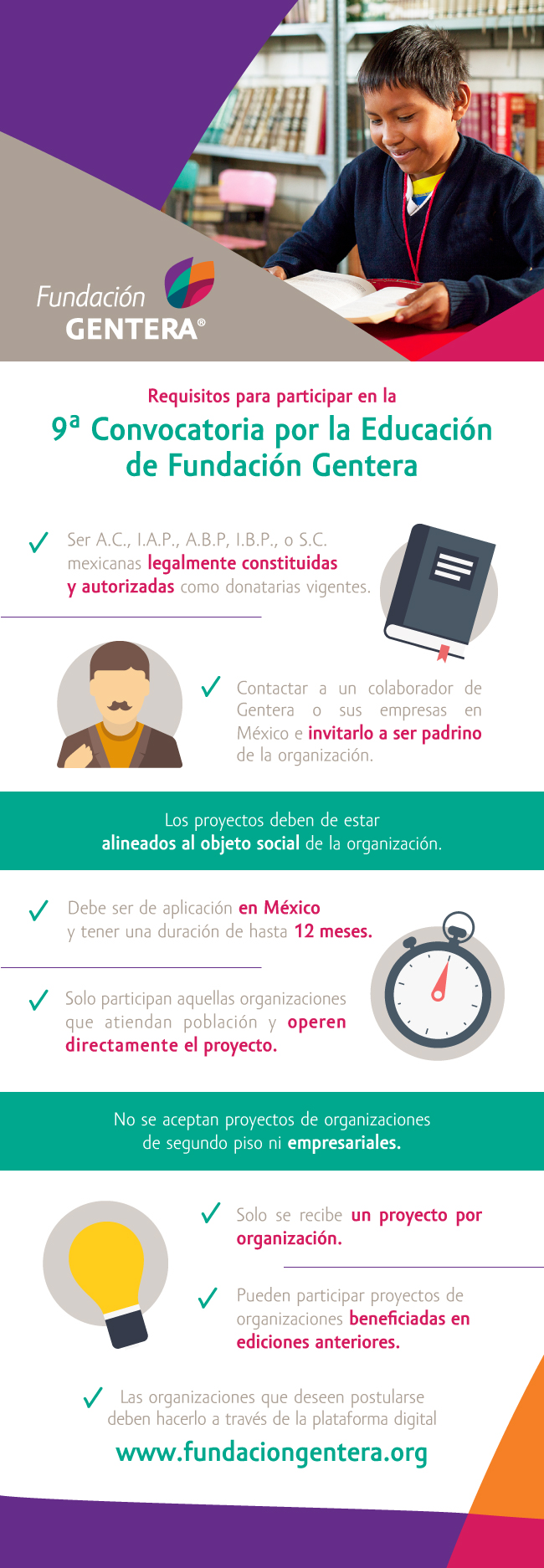Se trata de la Novena Convocatoria por la Educación 2018 de Fundación Gentera, que se publicó el pasado mes de diciembre y cerrará el próximo 16 de febrero, ¿quieres saber cómo participar? Aquí te contamos.