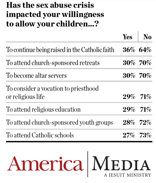 Por ejemplo, en una encuesta de EE.UU: America Magazine National Survey of Adult Catholics 2021, realizada por el Centro de Aplicación de Investigación para el Apostolado (CARA) y publicado en el portal americamagazine, arrojó los siguientes hallazgos: