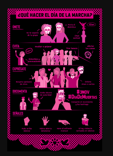 “En México recordamos a los niños fallecidos el 1 de noviembre. El 2 a los adultos. Y este 3 de noviembre recordaremos a las mujeres víctimas del feminicidio”, puede leerse en el sitio web diademuertasmx.com.