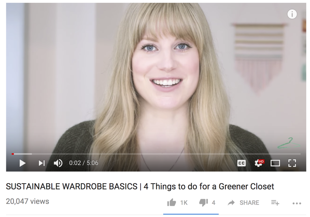 En este canal, la protagonista de los videos le enseña a sus espectadores cómo tener una vestimenta sostenible y además estar a la moda. Además, apoya el estilo consciente y social. En su canal se pueden apreciar diferentes videos de qué prendas y artículos de belleza o de uso diario, no tienen gran impacto ecológico y cómo usarlas.