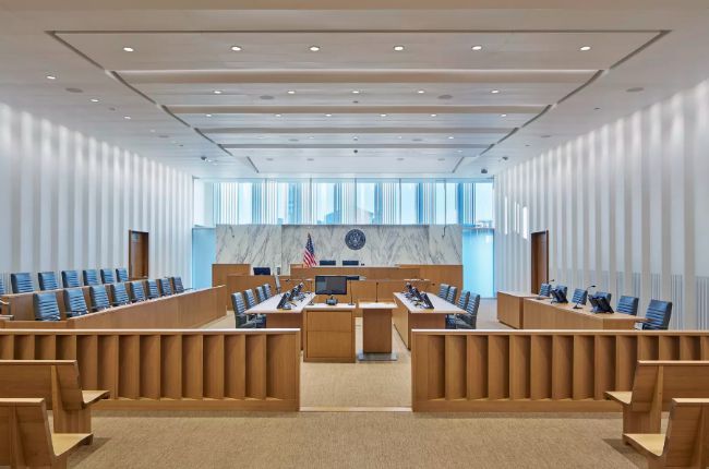 El Nuevo Tribunal de Justicia de los Estados Unidos en Los Ángeles fue concebido bajo una visión sostenible. El inmueble que alberga 24 juzgados y 32 cámaras judiciales está certificado como LEED Platino, cumple con el objetivo energético hacia el 2020 de la Administración de Servicios Generales (GSA por sus siglas en inglés) e incorpora en su estructura tecnología sustentable, como paneles fotovoltaicos, y una fachada plisada que reduce la radiación anual generada en un 47% y disminuye la carga de la planta central en un 9%.