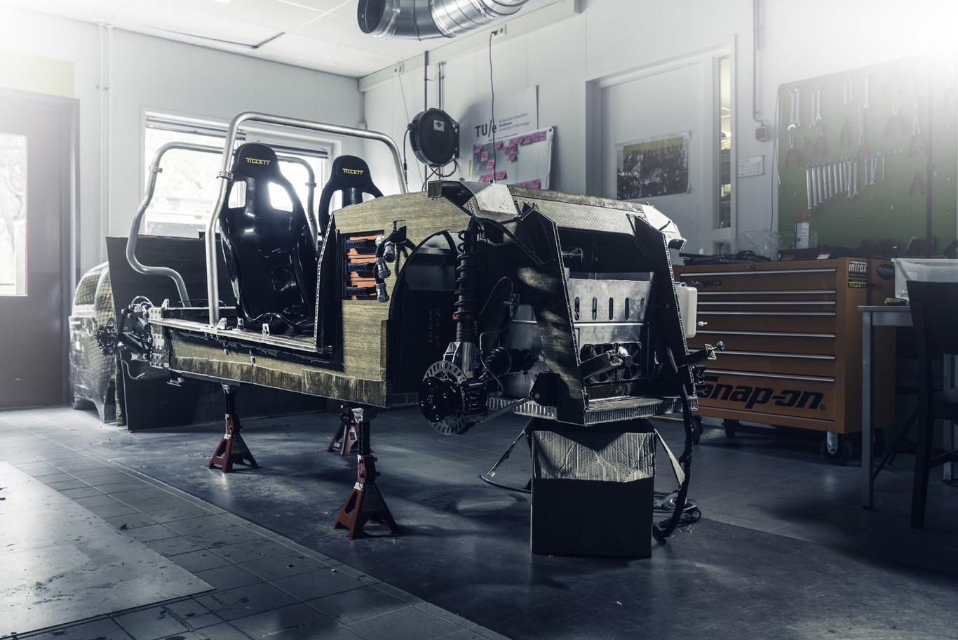 La mezcla de ambos elementos, que es similar a la fibra de vidrio, le da al carro un peso de 310 kg que le permite al motor eléctrico funcionar de una manera más eficiente y alcanzar una velocidad aproximada de 80 km por hora.