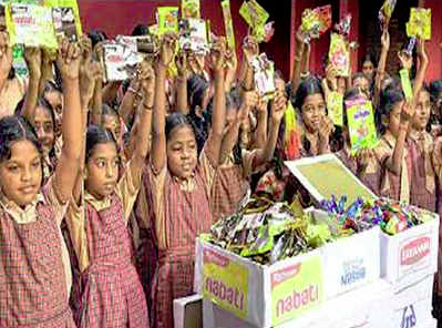 Este es un ejemplo de que el cliente no es tonto. Un grupo de niñas de la ciudad india de Toothukudi en Tamil Nadu ha abordado este tema de una manera interesante e innovadora. Impulsado por el ayuntamiento, estudiantes de Subbiah Vidyalayam Girls Higher Secondary School recogieron todas las envolturas de alimentos que generaron durante un período de dos semanas. Esto ascendió a 20,244 envolturas, con algo más de 10,000 atribuidas al fabricante de alimentos Britannia y otras 3,412 al fabricante de obleas Nabati.