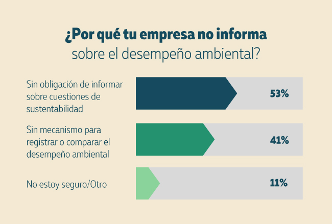 Más de un tercio de las compañías encuestadas (35%) no reportan su desempeño ambiental; más de la mitad afirma que es a causa de la falta de requisitos legislativos o presión comercial.