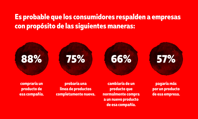 Las marcas impulsadas por un propósito pueden ganar nuevos clientes o participación en el mercado. Casi nueve de cada 10 consumidores (88%) dicen que comprarían un producto de una empresa con propósito social.
