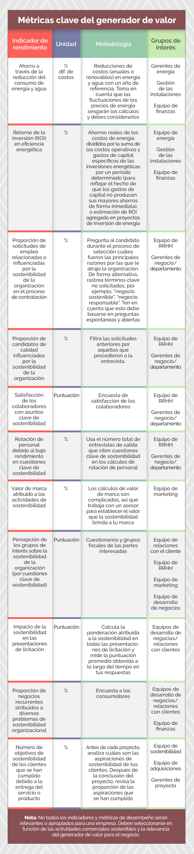 Por lo tanto, el propósito de este informe es empoderar a las empresas y las personas para que presenten argumentos comerciales que mejoren las actividades de impacto ambiental y social, y para que puedan medir y demostrar el valor que sus organizaciones obtienen de tales prácticas. El informe se centra en la creación de valor dentro de una empresa en vez de medir el capital natural, el valor social o el vínculo específico entre los activos sostenibles construidos y los mayores rendimientos financieros.