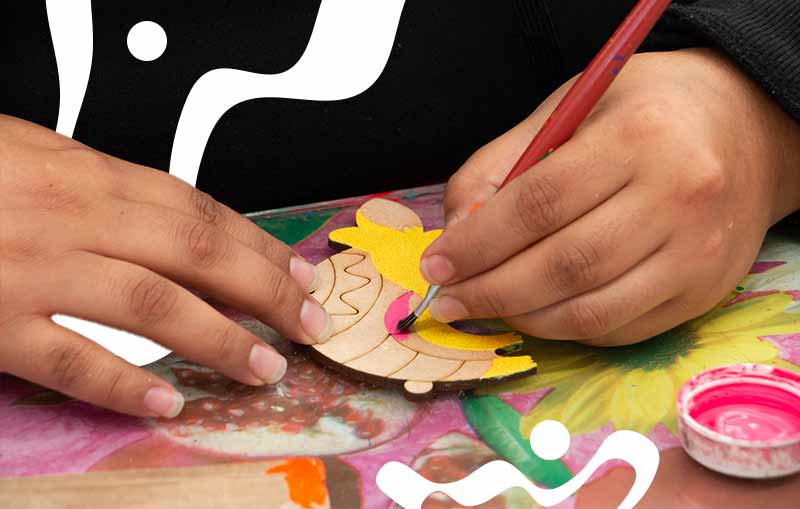 Entre corte, pintado y acabado, cada integrante tiene un trabajo específico. Además, el taller brinda una oportunidad flexible para que las mujeres artesanas en México puedan trabajar las piezas desde su casa.