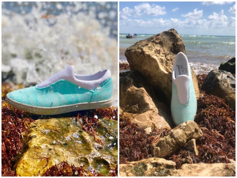 Cada suela del calzado cuenta con 100 gramos de sargazo y la parte superior está fabricada con botellas de plástico.