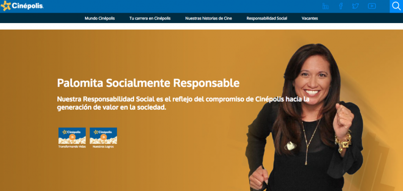 En la bolsa de trabajo de Cinépolis cinepolisjobs.com hay una pestaña que habla particularmente de las acciones de responsabilidad social de la compañía, muchas a través de Fundación Cinépolis, para que los interesados en colaborar puedan conocer fácilmente los intereses de la compañía en temas de desarrollo y acción social.