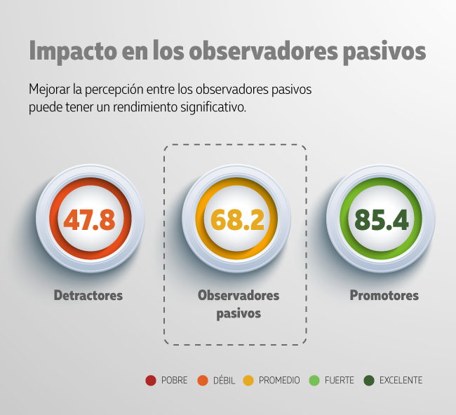 Cuando se trata de mejorar la percepción, elevar la reputación de una empresa entre los observadores pasivos puede tener un impacto de +17.2 puntos en ese segmento.