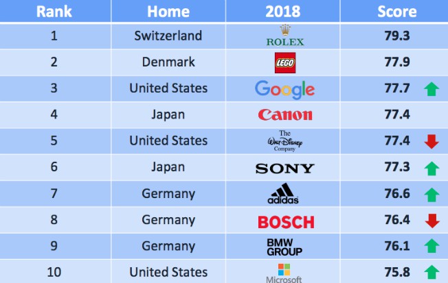Rolex es la compañía con mejor reputación del mundo, seguida de LEGO y Google.