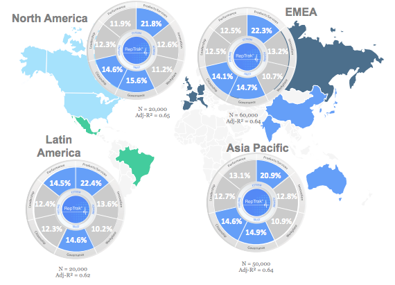 Reputation Institute fue fundado en 1997, y ha estado midiendo la reputación por más de 20 años. Analiza más de 7,000 empresas por año, en 55 países y 20 industrias diferentes y ayuda a las organizaciones a responder las siguientes tres preguntas clave: